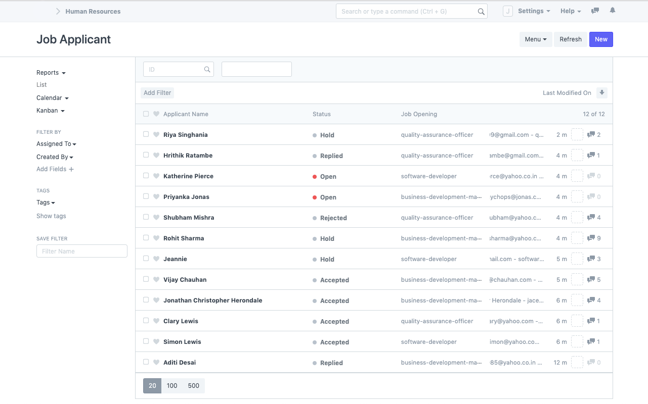 قم بإنشاء برنامج HRMS وكشوف المرتبات مفتوح المصدر الخاص بك. قم بتعيين البيانات التي تهمك عن طريق إضافة حقول مخصصة في النماذج الخاصة بك. ثم قم بتخصيص سلوك النموذج عن طريق الجلب التلقائي للقيم ، وإخفاء الحقول بناءً على أدوار المستخدم ، وإنشاء تنسيقات طباعة مخصصة - كل ذلك بدون سطر واحد من التعليمات البرمجية.