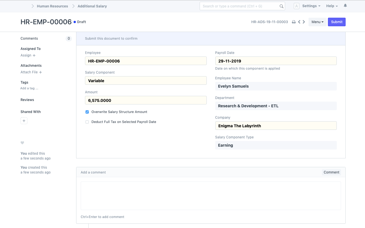 سواء كان ذلك للحصول على مكافأة أداء استثنائية أو بدل / متأخرات ، فقد تحتاج إلى إجراء تعديلات مخصصة على هياكل راتبك. لهذا السبب تتيح لك ميزة الراتب الإضافي إضافة أو خصم الراتب لموظف معين أثناء معالجة كشوف المرتبات.