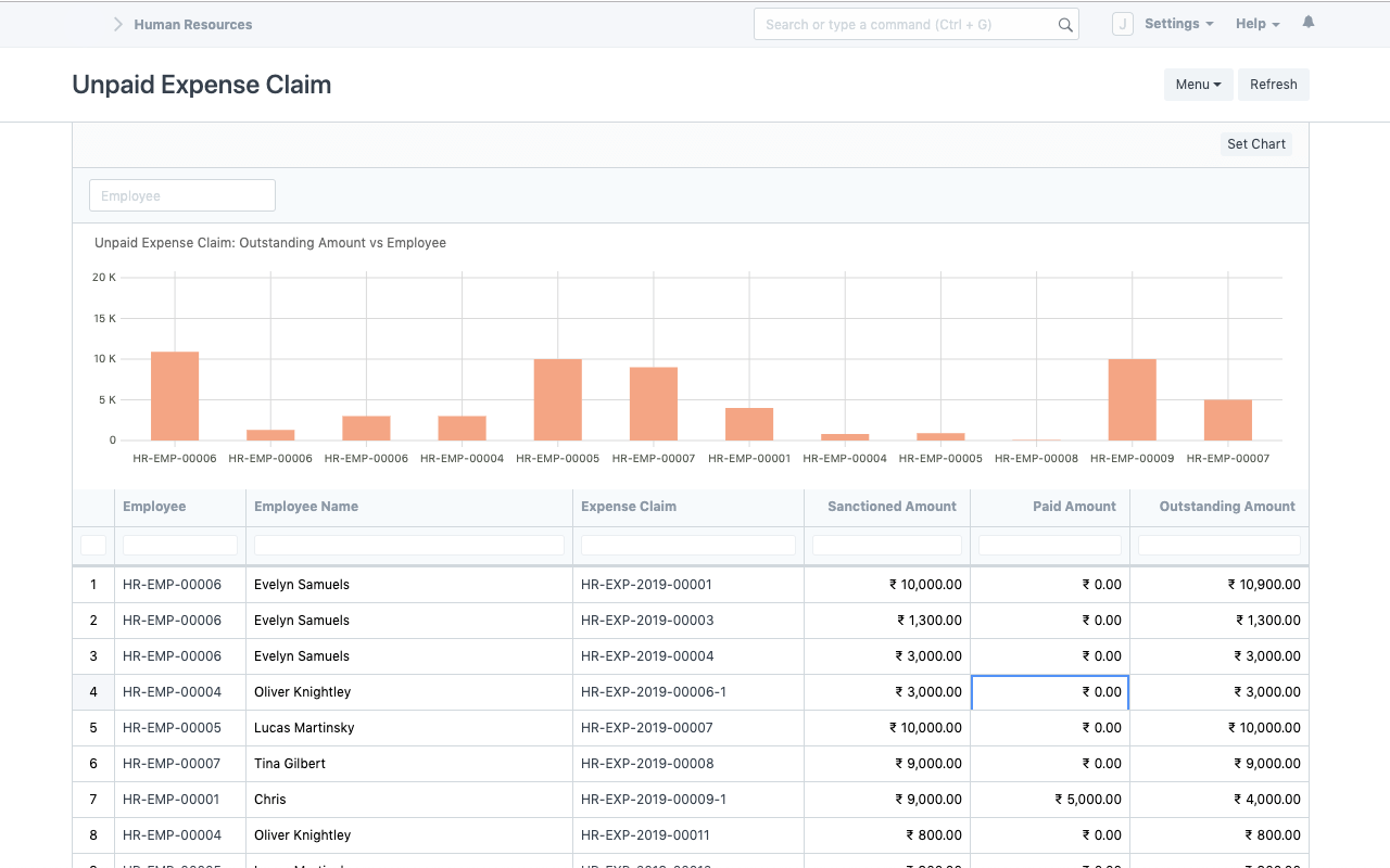 قم بإدارة النفقات وطلبات السفر وسلف الموظفين بكفاءة من خلال برنامج HRMS وكشوف المرتبات مفتوح المصدر. يساعد ERPForever المديرين على رؤية جميع نفقات الموظفين دفعة واحدة. تساعد الموافقات السهلة ومهام سير العمل القابلة للتهيئة الجاهزة على توفير الجهد اليدوي لإدارة مطالبات النفقات.