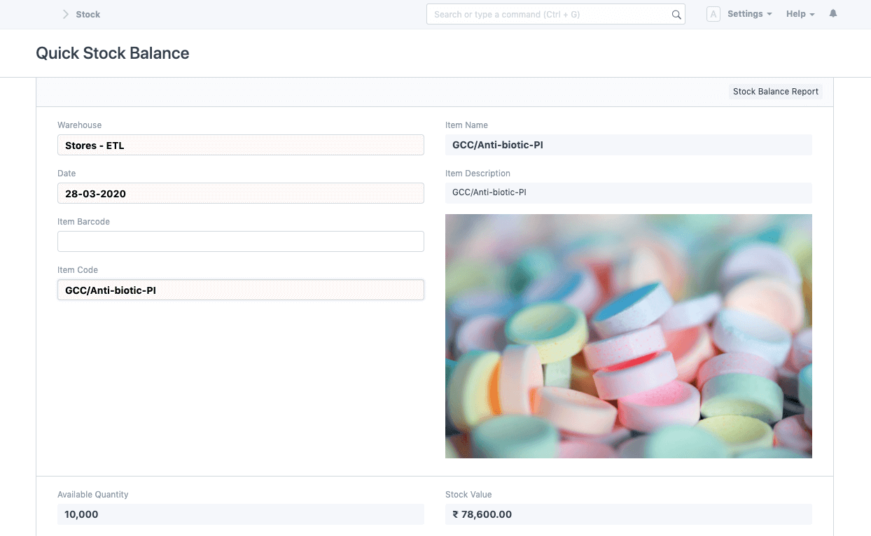 باستخدام تقرير رصيد المخزون السريع ، يمكنك إجراء عمليات تدقيق المخزون للتحقق من المخزون في المستودع ، والتحقق منه مقابل المخزون المسجل في النظام. ما عليك سوى مسح الرمز الشريطي ضوئيًا باستخدام أي جهاز (لا يلزم وجود ماسح ضوئي للرمز الشريطي!) وابدأ في العد.