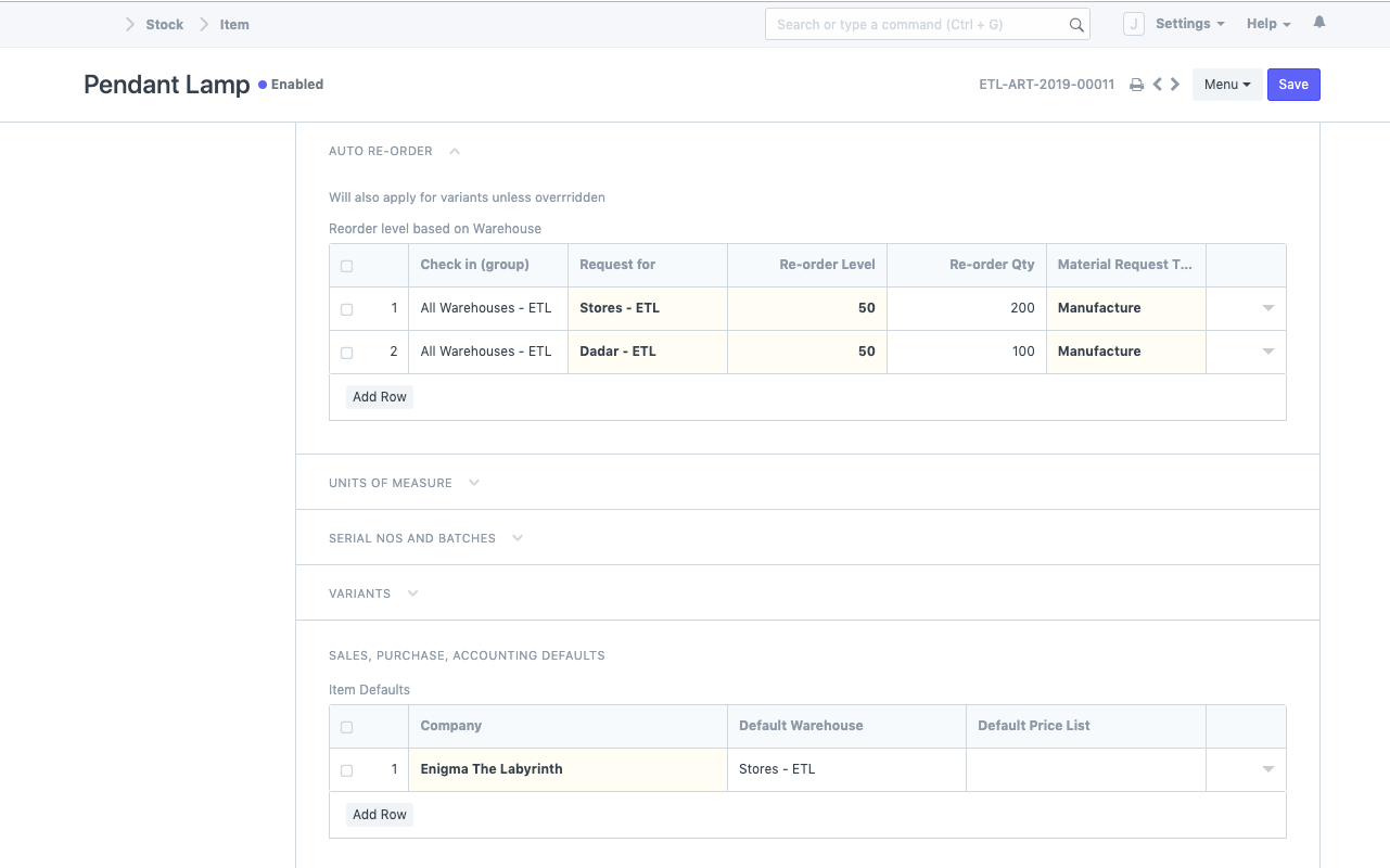لمنع نفاد المخزون ، تتبع مستوى إعادة ترتيب العنصر. عندما ينخفض مستوى المخزون إلى ما دون مستوى إعادة الطلب ، سيقوم ERPForever تلقائيًا بإنشاء طلب مادة. يساعدك هذا على تجديد المخزون في الوقت المناسب تمامًا وتقليل فرص استنفاد المخزون.