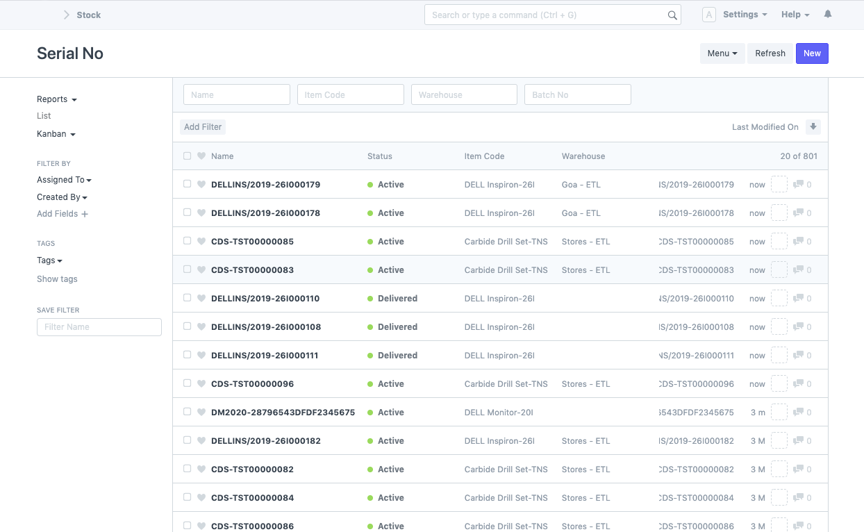 استخدم الأرقام التسلسلية لتعريف الوحدات بشكل فريد. قم بإعداد سلسلة التسمية ، وسيقوم ERPForever تلقائيًا بإنشاء أرقام تسلسلية للمخزون الجديد. يمكنك أيضًا مسح الرموز الشريطية للعناصر ضوئيًا عبر كاميرا جهازك لسهولة البحث في جميع مخزونك.